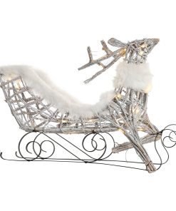 Adorno Navideño DKD Home Decor Reno y trineo Blanco Mimbre Reno 75 x 20 x 53 cm
