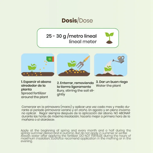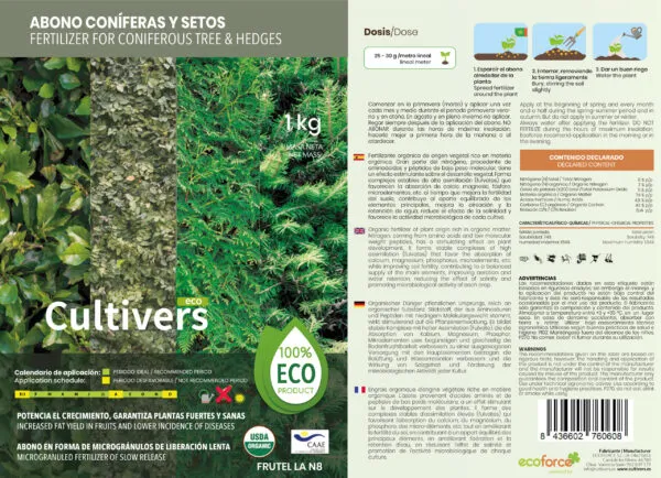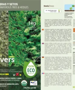 Abono Coníferas Ecológico con Formulación especial para pinos, abetos, tuyas, cipreses y cedros. Potencia en crecimiento del árbol y las hojas, garantizado árboles fuertes y sanos. Abono en forma de micro gránulos de liberación lenta y controlada. Abono orgánico ecológico con NPK 8-1-5 74% M.O. y Ácidos Húmicos. Mejorando el desarrollo radicular de la planta y la absorción de nutrientes. Producto 100% Natural e Inofensivo para animales y plantas. Abono Ecológico especial Coníferas y Setos (Pinos, Abetos, Cipreses y Tuyas). Origen 100% Orgánico y Natural con Alta concentración de NPK.