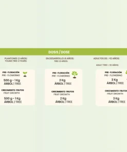 - Pre-Floración: 1 kg-2 kg/árbol.