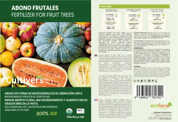 Abono Frutales Ecológico aumenta calibre del fruto y mayor rendimiento de cosecha.. Aumento de los grados brix en fruta y menor aborto floral.