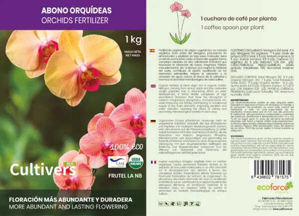 Abono Orquídeas Ecológico. El fertilizante ecológico para orquídeas es un formulado desarrollado para el aporte de una nutrición completa y equilibrada para el crecimiento y la floración.