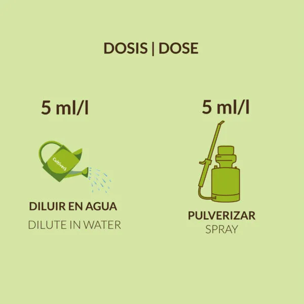 - Abono a base de algas para estimular el crecimiento del fruto, sin hormonas sintéticas.