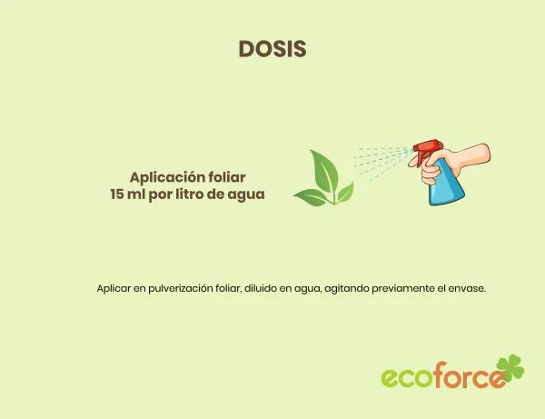 Aplicación recomendada: Cada 15 días, 2 tratamientos mínimo. Aplicar al atardecer o amanecer. Evitar altas temperaturas.