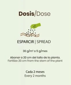 - Dosis: 100 gramos planta repartidos durante el ciclo vegetativo.