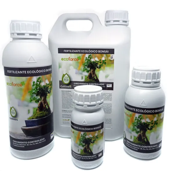- Fertilizante ecológico líquido especial para Bonsái. Favorece el desarrollo de la planta y el crecimiento controlado.