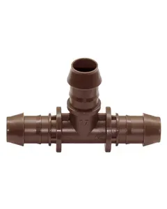 3. Te estriada 17 mm: El te estriado de 17 mm de Rain Bird permite la distribución eficiente del agua en sistemas de riego por goteo. Este accesorio cuenta con una construcción robusta que asegura una conexión segura y estanca en la red de tuberías, permitiendo una distribución uniforme del agua a lo largo del sistema.