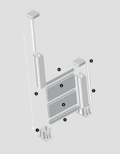 Accesorios para la instalación del sistema de vallas Suprafence que está diseñado especialmente para vallado y ocultación tanto en zonas privadas como públicas. El sistema es tan flexible que se adapta a cualquier situación donde ya existe una construcción. Tienes disponible tres colores de valla Supradeck ocultación: IPE, Teka y nevado.