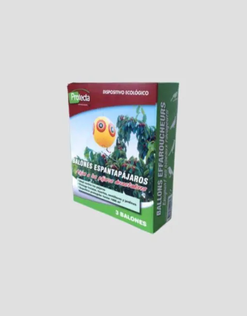 Superficie protegida: 200 a 100m2 (según especies). Funcionamiento: colgar con pértigas o en las ramas los 3 balones, e intercambiarlos o moverlos ligeramente de emplazamiento cada semana.