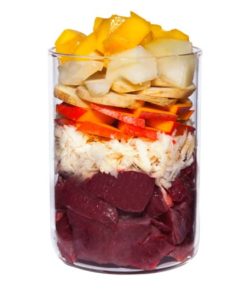 97% oreja de cerdo fresca en su salsa, guisantes, zanahorias, boniato, especias.