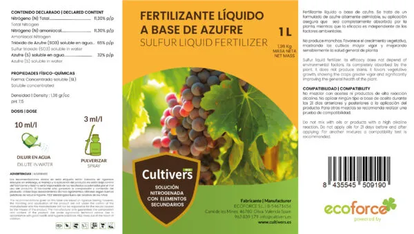 Es un formulado de Azufre líquido trasparente, con acción sistémica.