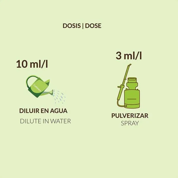Aplicación recomendada: 1 vez al mes . Cada 15 días en verano. Aplicar al atardecer o amanecer. Evitar altas temperaturas.