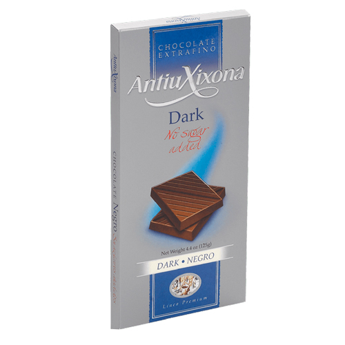 Barra de Chocolate 52% Cacao, sin azucar y sin gluten, 125 grs Marca Antiu Xixona