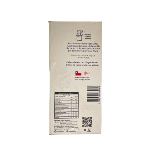 80 grBarra de chocolate elaborada a base de cacao criollo, baja en carbohidratos, endulzada con alulosa, libre de sellos y sin lactosa.