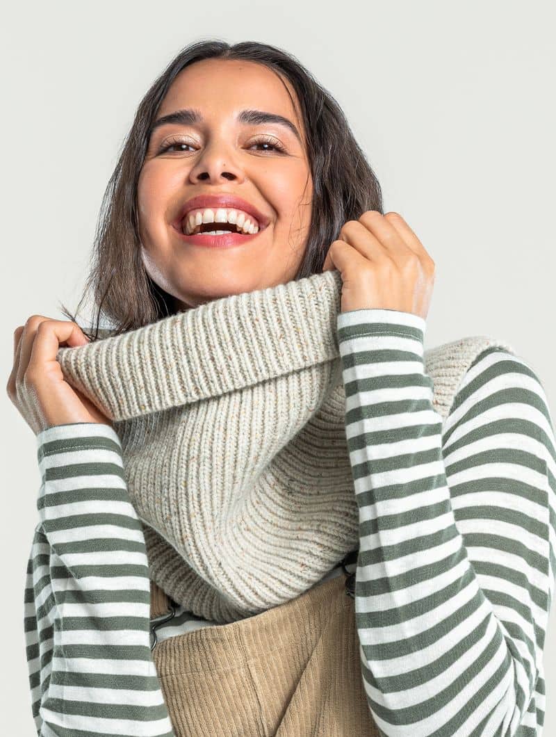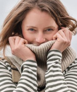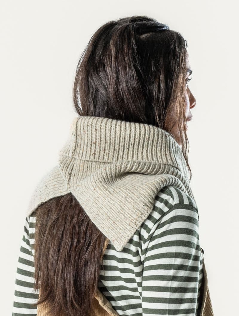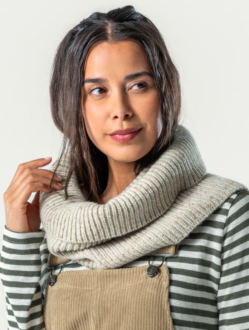 La bufanda tubular confeccionada con lana orgánica certificada GOTS, es una fuente de calor confortable y elegante para los días de invierno.