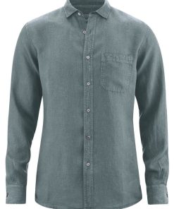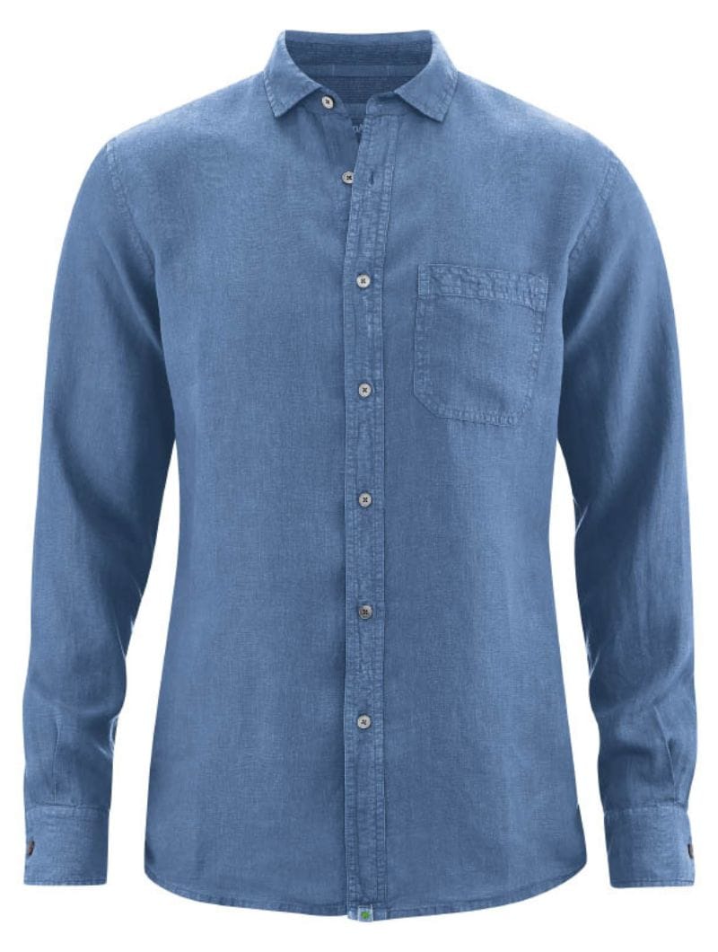 Camisa ligera 100% cáñamo para hombre con un acabado jaspeado natural. Presenta un ajuste normal que ofrece comodidad sin perder estilo, con un bolsillo en el pecho y botones de nácar que aportan un toque elegante y sencillo.