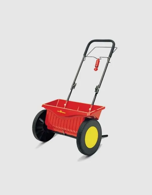 Es el carrito esparcidor de semillas de césped que utilizamos en el tutorial sobre cómo sembrar césped.