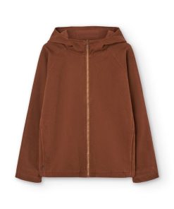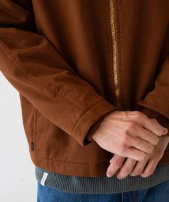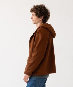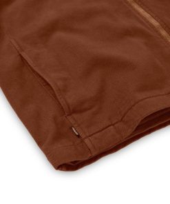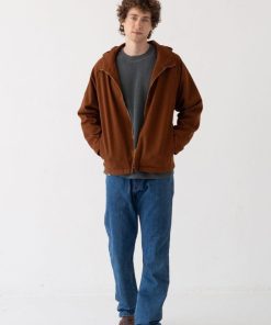 Chaqueta hombre con capucha en color teja de algodón orgánico. Ideal para un look casual y relajado.