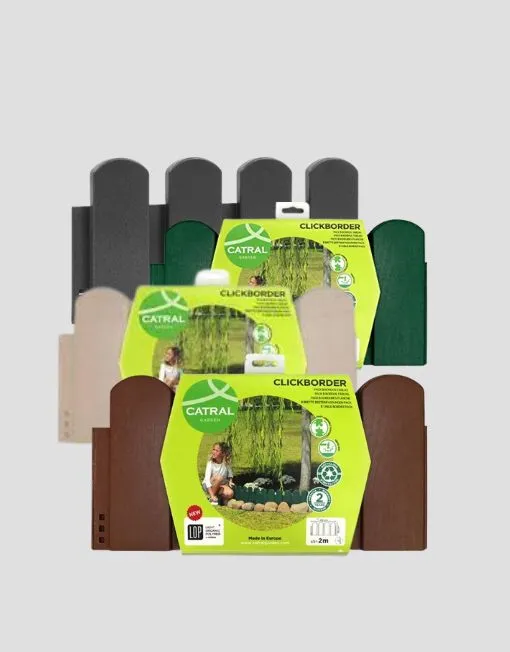 Gama de bordos tabla para tu jardín fabricado en LOP®, material desarrollado por Catral. Este producto es reciclado y reciclable, aportándole una condición única en el mercado.