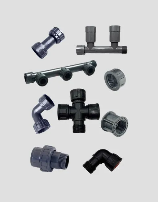 Estos productos, que incluyen codos, te, crucetas, manchón, tapones, alargadores, entre otros, son elementos fundamentales para el sistema de riego en tu jardín o cultivo.