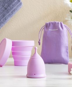 Esta copa menstrual con accesorios incluye un recipiente esterilizador para su higiene y conservación, lo que facilita su uso en óptimas condiciones. Este recipiente con tapa es plegable, ocupando así el mínimo espacio. Además, se incluye también una bolsa de algodón para guardar y llevar fácilmente a cualquier parte.