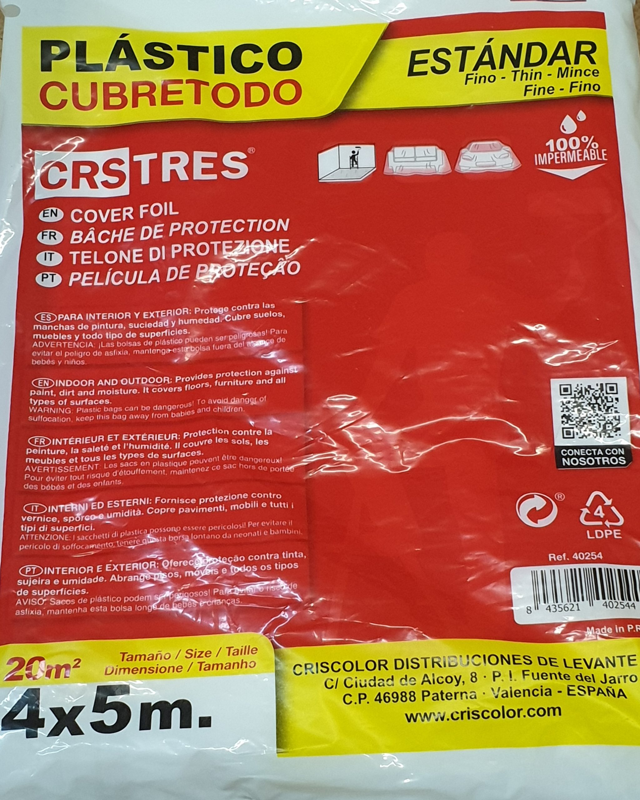 • Lámina de plástico para cubrir muebles y todo tipo de materiales