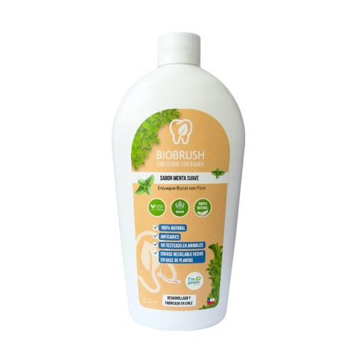 ¡Transforma tu rutina de cuidado bucal con Biobrush! Disfruta de una sonrisa protegida y fresca mientras cuidas el planeta con un enjuague bucal natural, efectivo y sostenible.