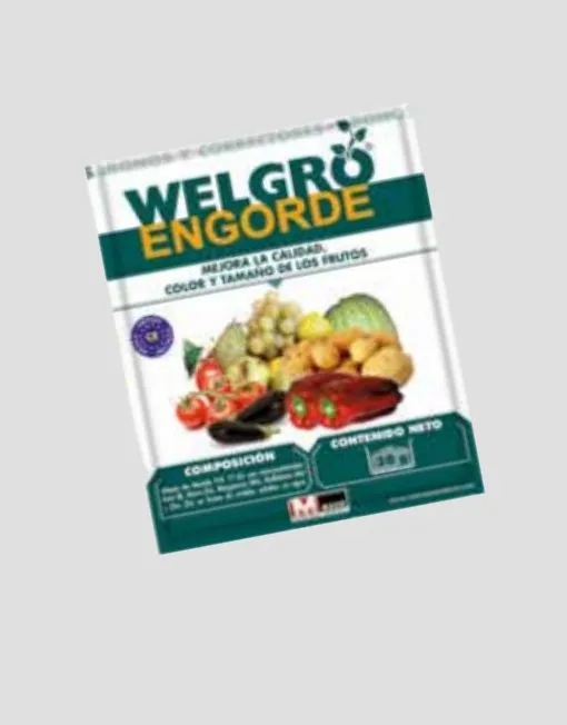 WELGRO ENGORDE es un fertilizante de alta calidad y avanzada fórmula que asegura un crecimiento saludable y sostenible de tus plantas, lo que maximiza su rendimiento y calidad de frutos.