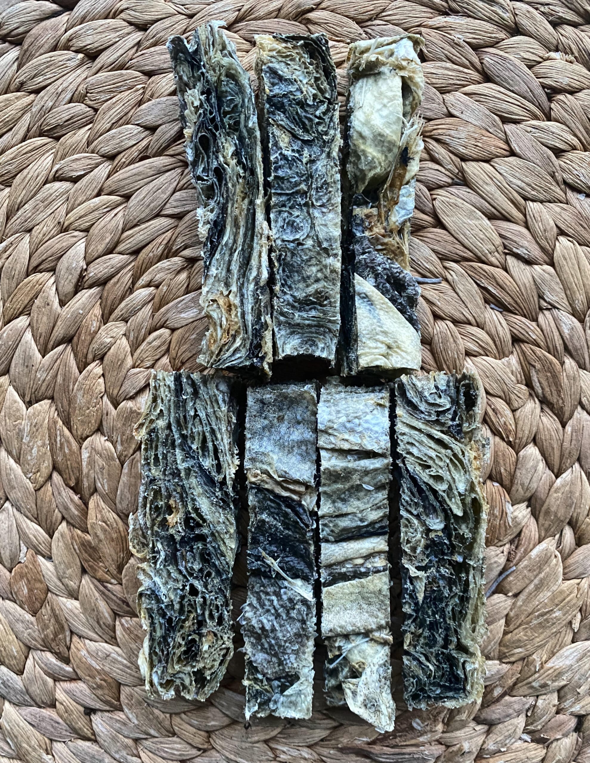 100% piel deshidratada de gallineta, bacalao, merluza.
