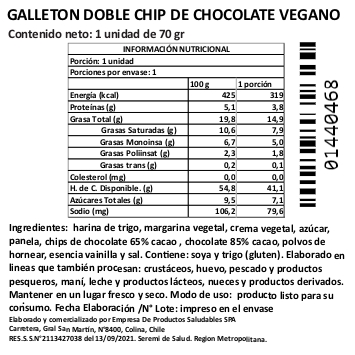 Un Galletón Doble Chip de Chocolate que te encantará, una deliciosa opción vegana que deleita con cada bocado.