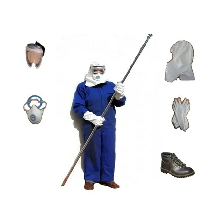 Es recomendable utilizar un equipo de protección cuyos elementos se encuentran fácilmente en el mercado (Mono de trabajo, Calzado cerrado, Guantes duros, Capucha cerrada, Mascarilla anti-polvo y Gafas de seguridad anti-vaho y con refuerzo en el contorno facial).