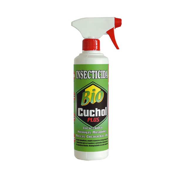 Insecticida en base acuosa e inoloro fabricado por Pons Química. El insecticidaBio Cuchol es eficaz contra las moscas, mosquitos, hormigas, cucarachas, etc. Efecto de larga duración, no es tóxico para animales de sangre caliente, ni para las plantas. El formato del producto es en botella de medio litro con pistola pulverizadora. De fácil uso, eficaz y no mancha.