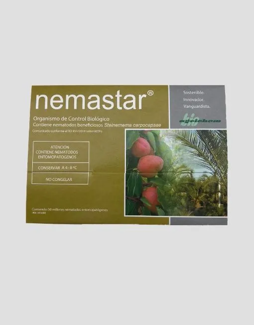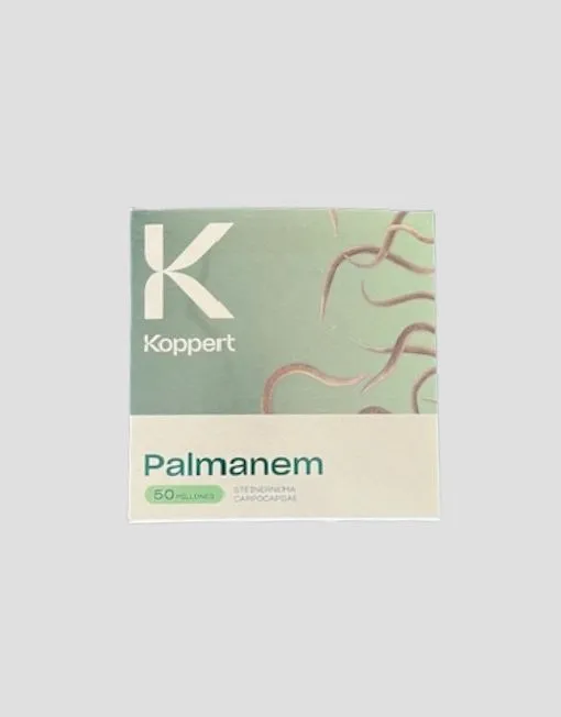 Nematodos 50 millones es un producto de Control Biológico –Steinernema carpocapsae (nematodo entomopatógeno)-, con Residuo Cero, por lo que está especialmente recomendado para su uso en Parques y Jardines sobre palmeras de cualquier especie. Es totalmente inofensivo para las personas y animales. Está indicado para la lucha contra el Picudo Rojo.