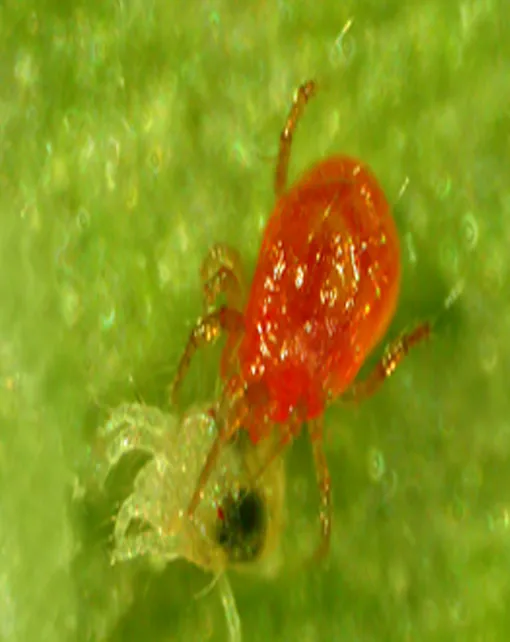 Cuando los adultos encuentran a su presa la succionan hasta secarla. Las arañas rojas adultas que son depredadas toman un color marrón oscuro por lo que son detectadas, a simple vista, como pequeñas manchas negras en las hojas.