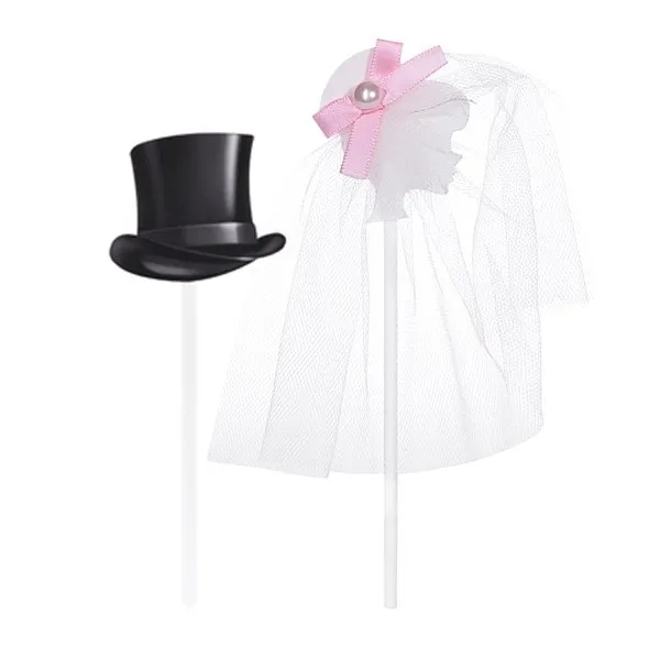 Pick PVC boda velo sombrero de 4-10,5 cm en caja de 24 uds, ideal para decorar pasteles y mesas. ¡Compra ahora y añade un toque único a tu boda!