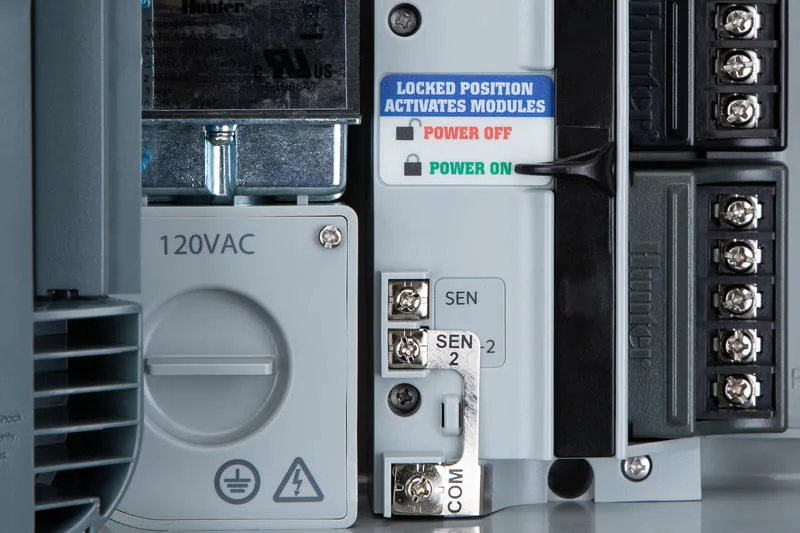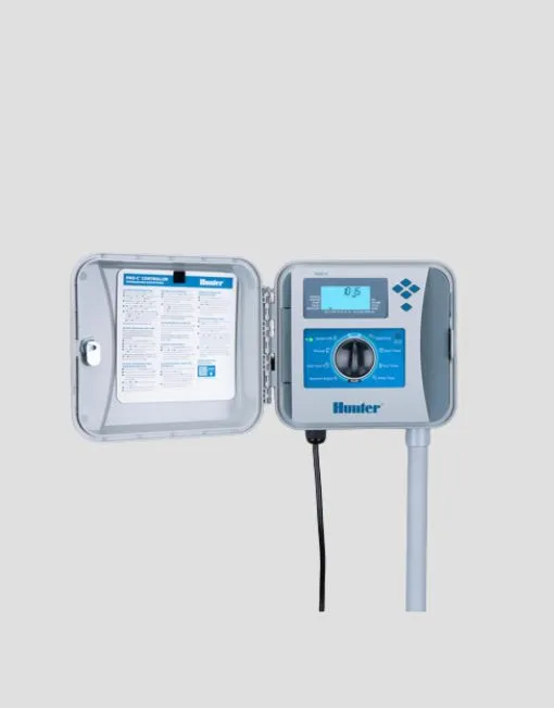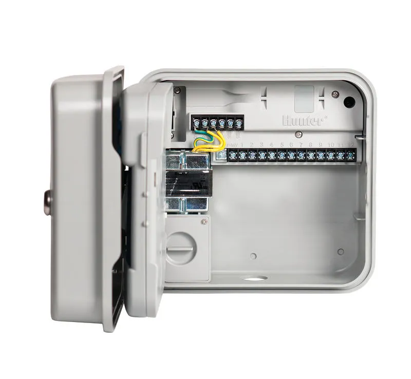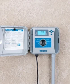 - Sensor inteligente: equipado con dos entradas de sensor para su uso con sensores Hunter Clik o Solar Sync™️, lo que garantiza un riego preciso y eficiente.