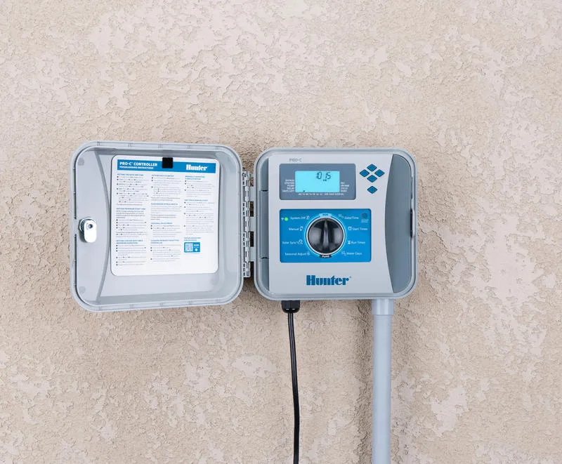 El programador Pro-C: el favorito de los instaladores de riego y la elección de los profesionales en proyectos de paisajismo residenciales y comerciales pequeños. Con su fiabilidad y robustez comprobadas, el Pro-C destaca como el más fiable y resistente del sector. Su diseño modular ofrece flexibilidad para aumentar el número de estaciones, y los modelos PCC de 6 y 12 estaciones fijas son los más asequibles dentro de los programadores residenciales de gama alta.