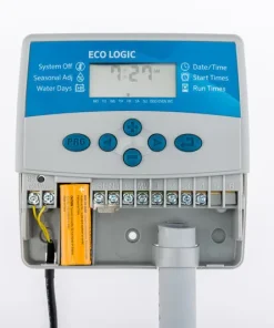 Disponible en modelos de 4 y 6 estaciones, el Eco-Logic maximiza la eficiencia del sistema. Compatible con sensores de clima y equipado con memoria no volátil, este programador garantiza un control preciso y confiable del riego. Además, cuenta con funciones como el bypass del sensor de lluvia, retardo por lluvia programable y ajuste estacional de 10% a 150%.