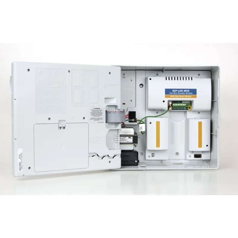 - Cada módulo ESP-LXD lleva instalado el software de gestión del caudal Flow Smart de Rain Bird: basta con conectar de 1 a 5 decodificadores de sensores SD-210 y caudalímetros (no incluidos) al cable de dos hilos y el programador se encarga del resto. Gran variedad de opciones para el control del caudal, incluyendo una función de eliminación del caudal bajo (Eliminate Low Flow – SELF) y otra de detección y eliminación del caudal excesivo (Seek and Eliminate Excessive Flow – SEEF). Descanse tranquilo con la certeza de que en caso de anomalías en el caudal, su programador resolverá la situación en su lugar.