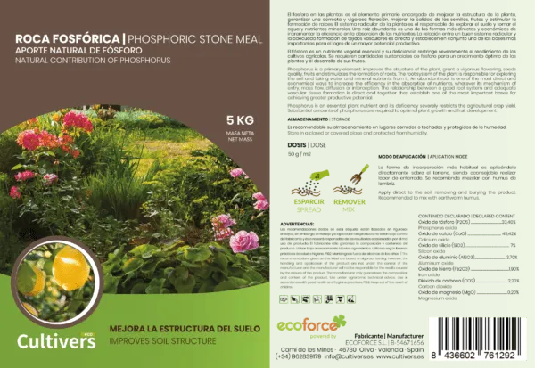 El fósforo es un nutriente vegetal esencial y su deficiencia restringe severamente el rendimiento de los cultivos agrícolas. Se requieren cantidades sustanciales de fósforo para un crecimiento óptimo de las plantas y el desarrollo de sus frutos.