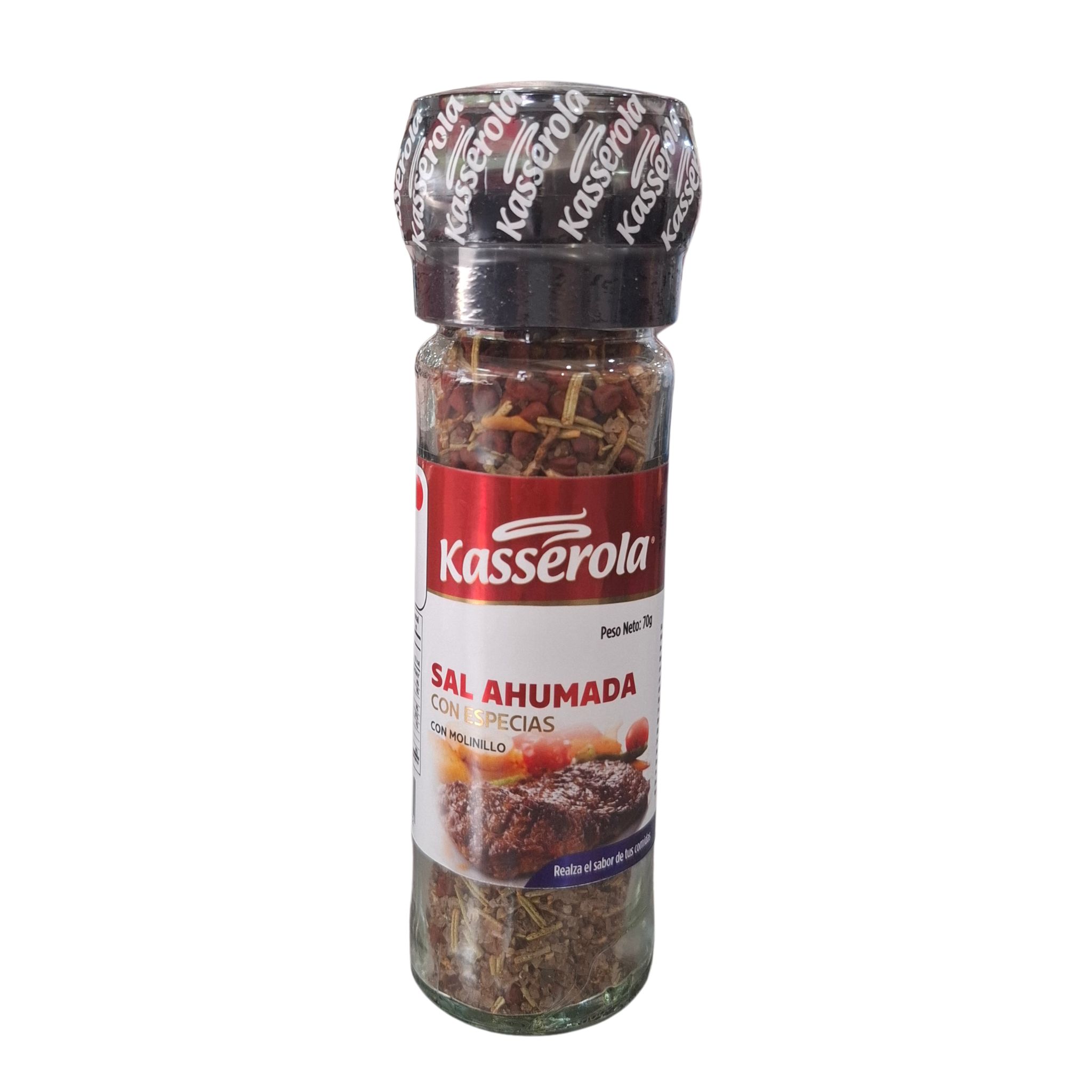 ¡Sal ahumada con especias para un sabor único! Sal ahumada con especias 70g, ideal para realzar el sabor de tus platillos. ¡Sabor ahumado y versatilidad en cada pizca!