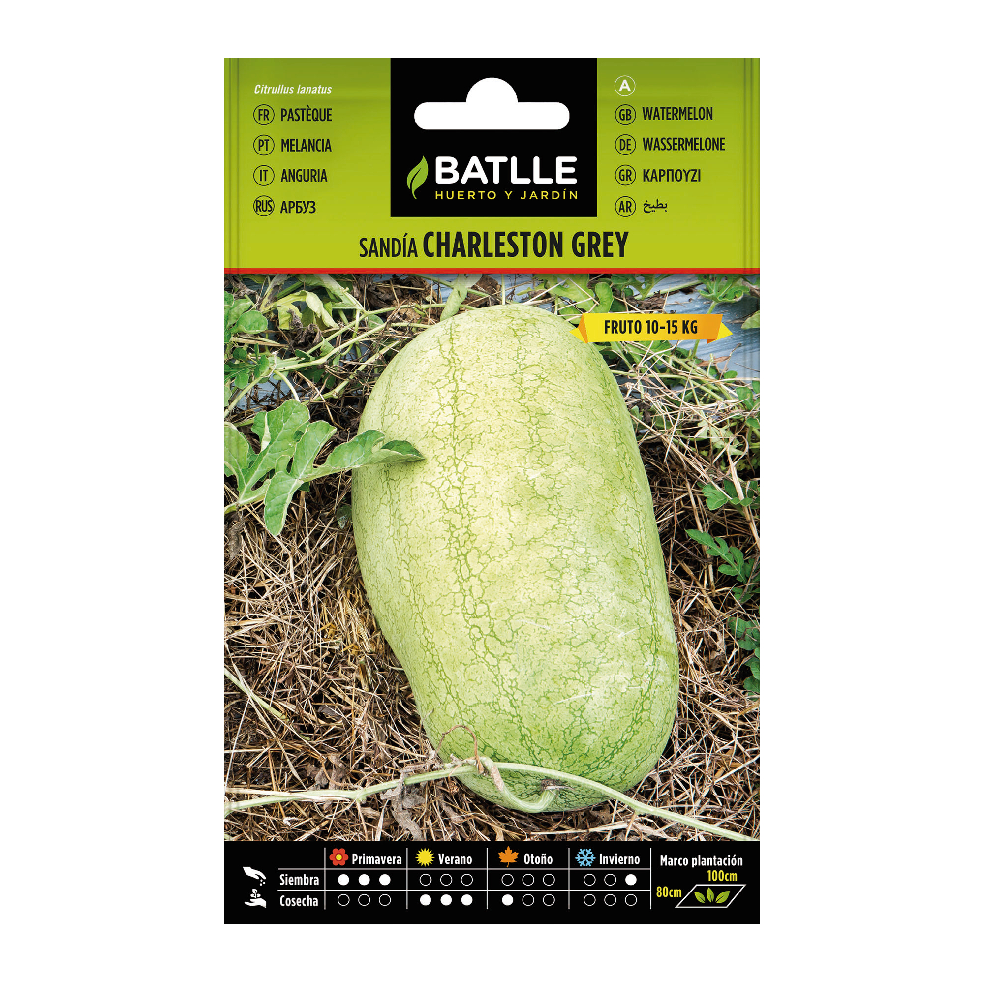 Su corteza gris verdosa es una de sus características distintivas. No solo le otorga un aspecto atractivo, sino que también es muy resistente, protegiendo la pulpa y permitiendo un excelente comportamiento durante el transporte y almacenamiento. Gracias a esta resistencia, las sandías Charleston Grey son perfectas tanto para el autoconsumo como para la venta en mercados locales.