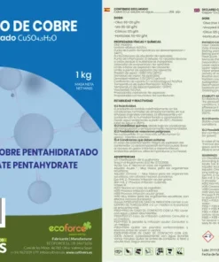 Polvo micronizado, muy estable para multiples usos para para jardín.Sulfato de cobre (II) pentahidratado Controla el moho, las manchas de hojas y costras del tizón y de la manzana. El sulfato de cobre para realización de experimentos escolares como la cristalización o realización de nieve instantánea.