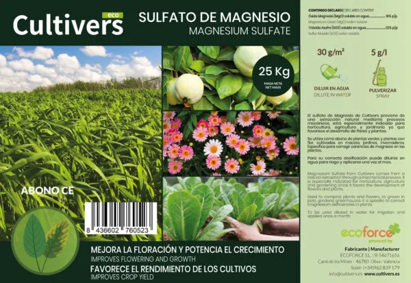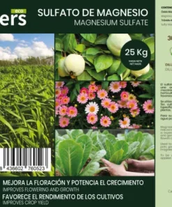 El sulfato de Magnesio de Cultivers proviene de una extracción natural mediante procesos mecánicos, está especialmente indicado para horticultura, agricultura y jardinería ya que favorece el desarrollo de flores y plantas.