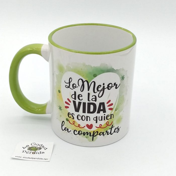 Taza «lo mejor de la vida» de porcelana. Capacidad 250ml.