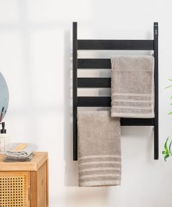 - Toallero moderno y elegante: nuestro toallero eléctrico de pie o pared es ideal para colgar varias toallas y secarlas o calentarlas con rapidez y eficacia. Un toallero de suelo y pared muy resistente de acero al carbono y PC. Por su diseño discreto y compacto, se integra fácilmente en la decoración del baño.