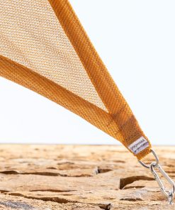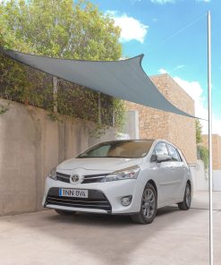 Una vela de sombra portátil (HDPE, 185 GSM) adaptable a multitud de espacios. Soporta bien su exposición a la intemperie. Su diseño cóncavo favorece su estabilidad y tensado óptimo.