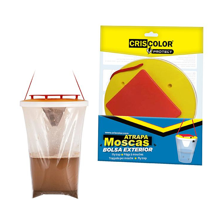 La Trampa Atrapa Moscas con Bolsa de Criscolor es una solución eficaz, limpia y sin productos químicos para controlar la presencia de moscas en espacios exteriores. Ideal para jardines, terrazas, patios, huertos, establos o zonas ganaderas, esta trampa está diseñada para atraer y capturar una gran cantidad de moscas comunes sin causar molestias ni utilizar insecticidas peligrosos.