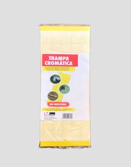 Esta trampa cromática es especialmente útil para el control de insectos como minadores, mosca blanca, trips, ceratitis capitata, tuta absoluta y otros insectos comunes en las huertas. Lo mejor de todo es que la trampa cromática huerta no contiene insecticida, lo que la hace segura para su uso en cualquier lugar.
