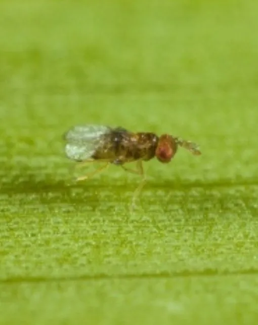 Los adultos de Trichogramma son insectos himenópteros parásitos, que depositan sus huevos dentro de los huevos puestos por la polilla del boj, evitando su desarrollo.