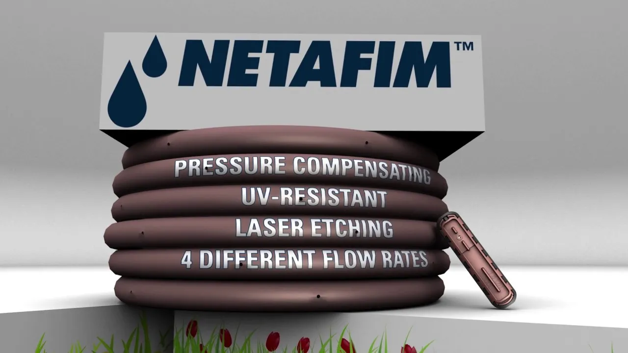 Tubería de color marrón de 17 mm. con goteros autocompensantes de 2,3 y 3,5 L/H y 1,2 mm de espesor de pared, especialmente diseñada por Netafim para riego subterráneo de cèspedes, riego subterráneo ó de superficie de árboles, arbustos y flores. Medianas, rotondas, taludes, muros verticales, cubiertas, azoteas, zonas verdes con orgrafía ondulada con formas irregulares ó fuertes vientos. Exclusivo mecanismo antisucción, único sistema antiarena y antisifón que previene la succión de tierra de alrededor de gotero para instalaciones de riego subterráneo. Barrera física interna antirraíces en cada gotero, con cámara asfixiante para instalaciones de riego subterráneo.